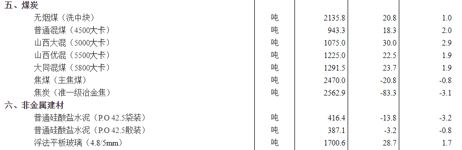 國(guó)家統(tǒng)計(jì)局近期公布數(shù)據(jù)可見(jiàn),4500~5800大卡煤炭?jī)r(jià)格在943元/噸~1291元/噸。同比一月上旬仍有1.9%~2%的漲幅。同期普通硅酸鹽水泥P.O42.5袋裝和散裝報(bào)價(jià)分別為416.4元/噸和387.1元/噸,同比一月上旬分別下跌13.8元/噸和3.2元/噸,跌幅3.2%和0.8%。