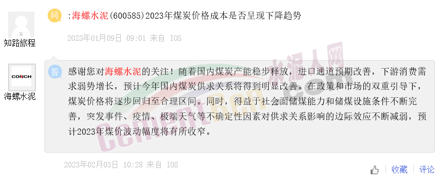 同期,塔牌水泥在接受相關(guān)機(jī)構(gòu)調(diào)研時(shí)也有表示,預(yù)計(jì)2023年煤炭?jī)r(jià)格將穩(wěn)中有降,對(duì)成本亦會(huì)有積極影響,行業(yè)盈利水平有望迎來(lái)復(fù)蘇。