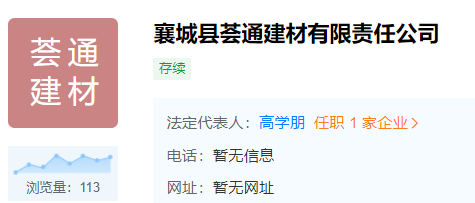 襄城縣薈通建材有限責任公司成立于2022年7月15日,法定代表人高學朋,經營范圍為建筑材料銷售等。企業行政許可信息僅有營業執照一項,未查詢到生產許可證信息。