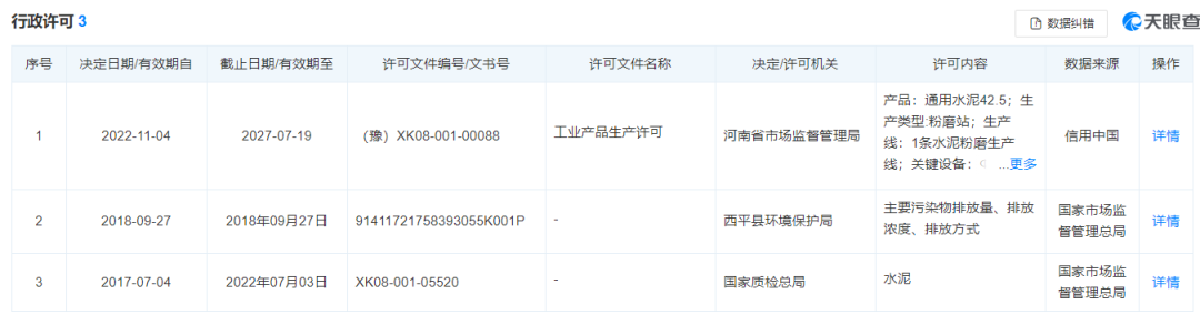 現場發現的水泥外包裝所標稱的生產許可證編號XK08-001-05520對應生產廠家為西平縣柏國水泥粉磨有限公司,該編號已于2022年7月3日到期。西平縣柏國水泥粉磨有限公司新申領的生產許可證編號為(豫)XK08-001-00088。