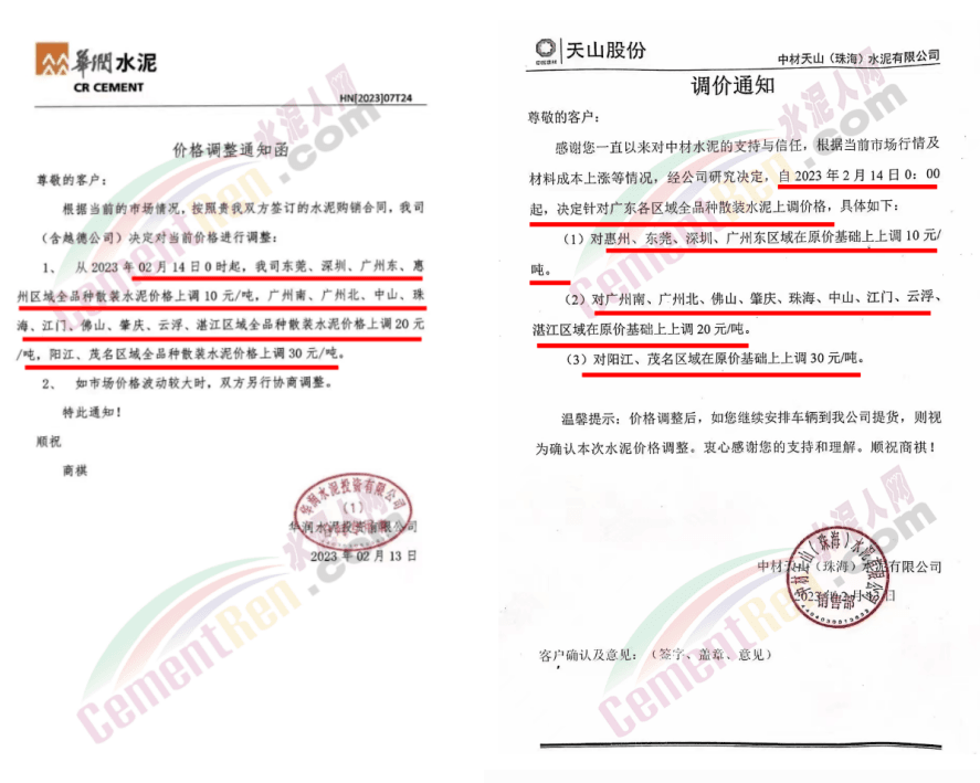上述區域主要品牌企業在本月9日前后曾先后通知上調水泥價格。其中華潤水泥通知稱,從2月9日起,上調東莞、深圳、廣州東、惠州各區域全品種散裝水泥價格10元/噸。