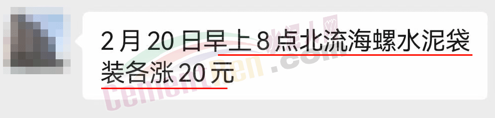 華潤水泥北海區域通知,2月21日零時起,對發北海各品種袋裝水泥出廠價格上調20元/噸。