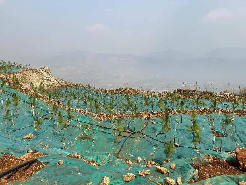 截至2023年2月14日,金江水泥累計(jì)修復(fù)面積83440.21㎡,完成率74.23%,投入資金497.05萬元。累計(jì)完成平臺(tái)覆土約23100噸,邊坡坡面鋪設(shè)爬藤類植物攀爬網(wǎng)約43273.71㎡,安裝輸水管道及噴淋系統(tǒng)約31676.7㎡,種植草籽及草本類花卉種子約29676.7㎡,種植邊坡坡面攀爬藤3000株,平臺(tái)種植喬木3500棵。