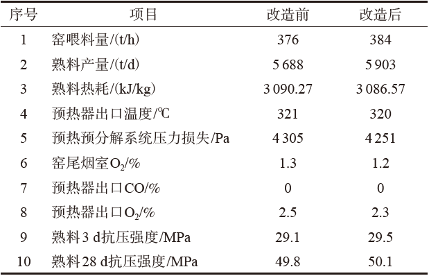 改造前后生產運行數據對比