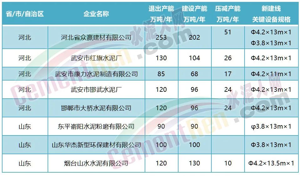 其中河北省眾贏建材有限公司整合五家水泥粉磨企業(yè)退出253萬噸/年粉磨產能,用于新建兩條水泥粉磨生產線,壓減粉磨產能51萬噸/年。