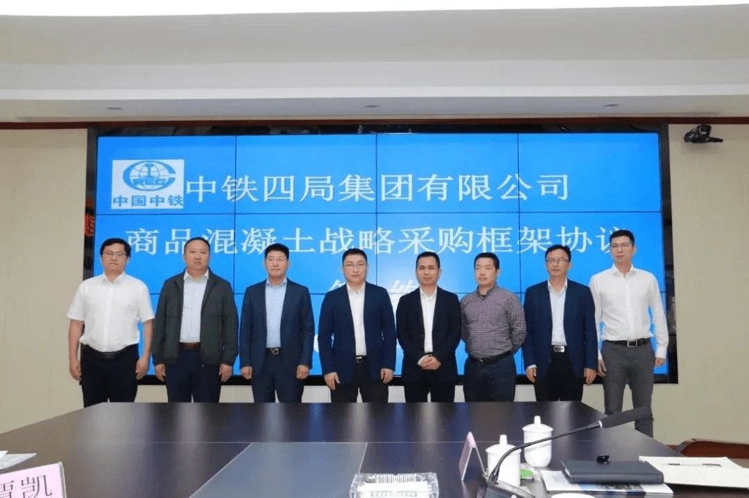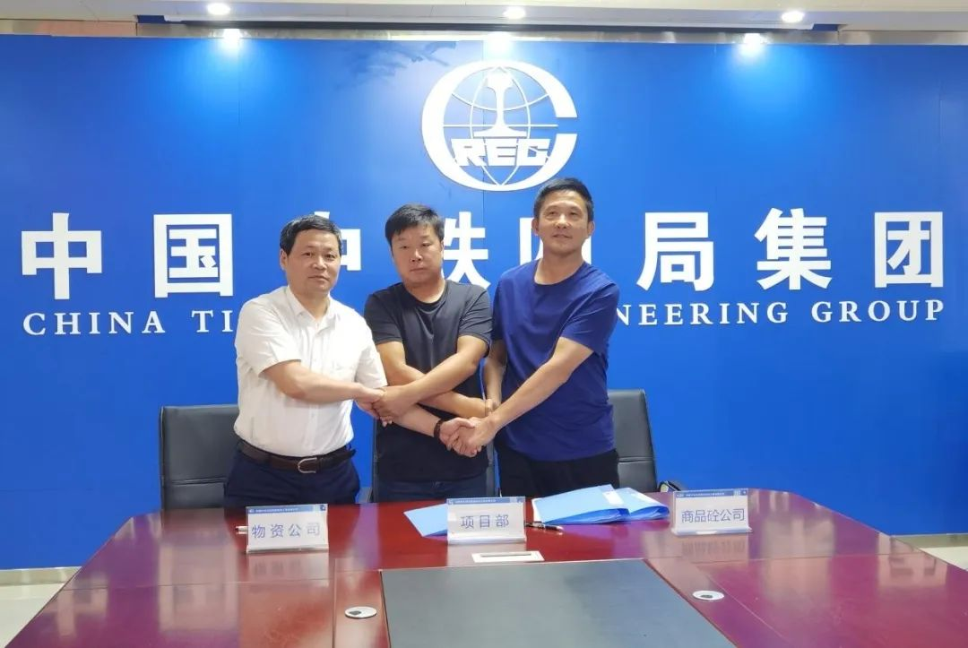 ▲中鐵四局建筑公司淮南區(qū)域經(jīng)理部水泥置換商品砼簽約儀式
