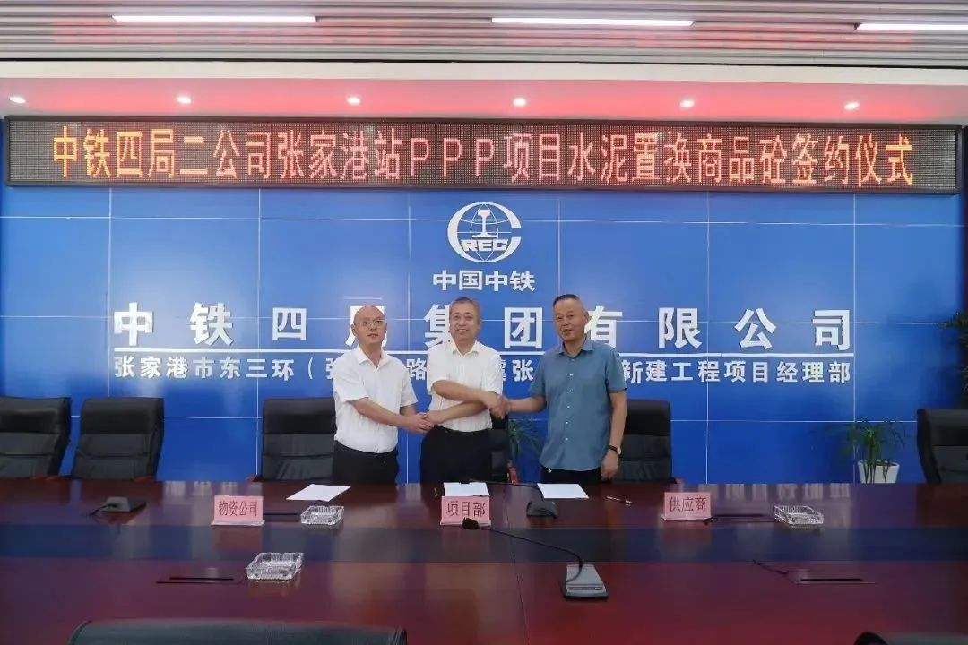 ▲中鐵四局二公司張家港PPP項(xiàng)目水泥置換商品砼簽約儀式