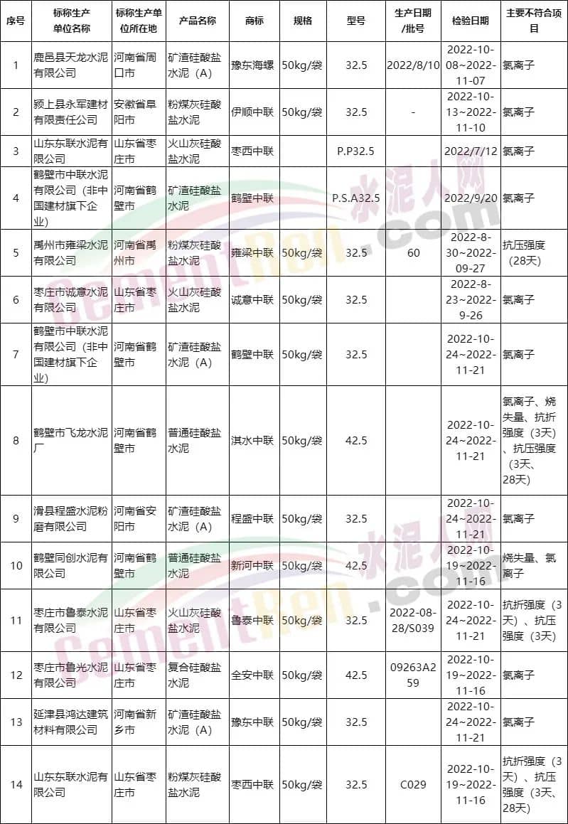 水泥人網(wǎng)近期公布的質(zhì)量萬里行不合格水泥名單中包含13個(gè)批次帶有“中聯(lián)”字樣的品牌水泥和一個(gè)帶有“海螺”字樣的品牌水泥。