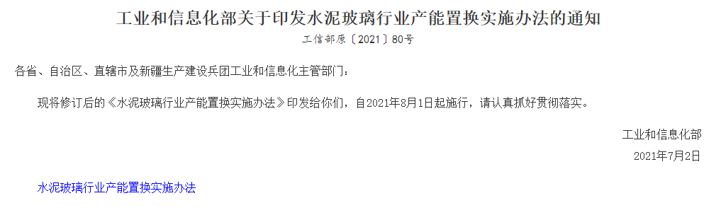 2021年8月1日起新修訂的《水泥玻璃行業產能置換實施辦法》 規定嚴禁備案和新建擴大產能的水泥熟料項目。確有必要新建的,必須制定產能置換方案,實施產能置換。產能置換要求中不論是位于國家規定的大氣污染防治重點區域實施產能置換的水泥熟料項目,還是跨省置換的項目,均加大了置換比例,但未規定在能耗方面的置換要求。