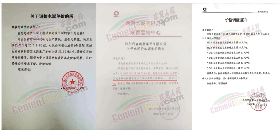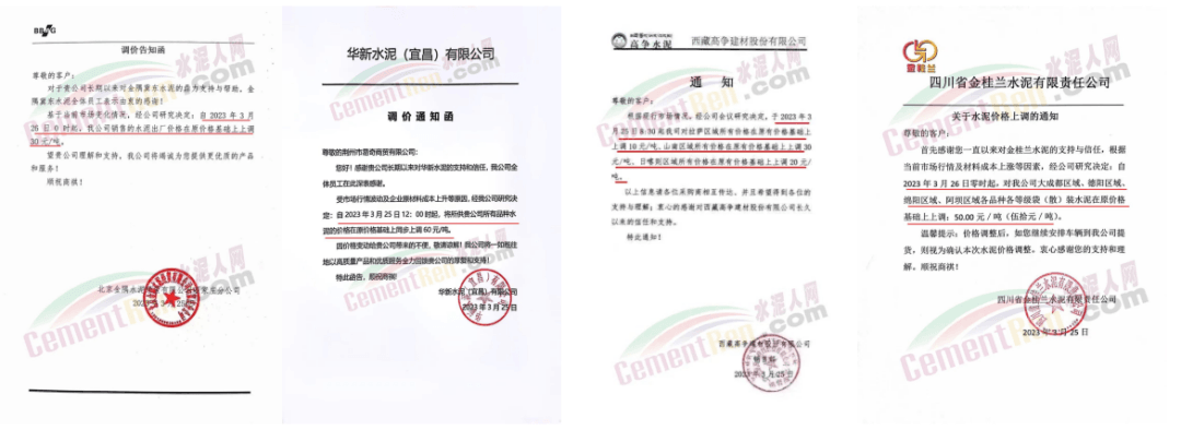 3月中旬以來,四川、重慶、湖北、湖南、江西、河北、海南等百余個城市上調(diào)報價,川渝地區(qū)甚至出現(xiàn)一次性上調(diào)50-70元/噸的行情。連價格一直維持較高位的西藏地區(qū)主要品牌企業(yè)也通知上調(diào)水泥價格10-30元/噸。