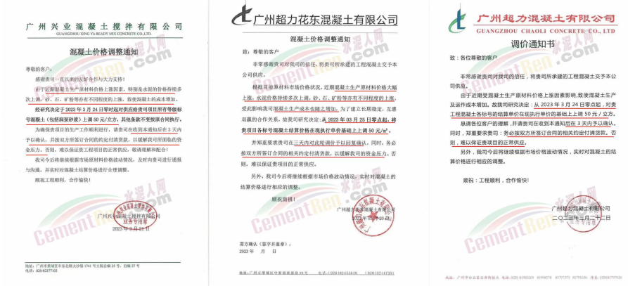 同期多地砂石骨料、粉渣微粉、商砼企業(yè)也通知上調(diào)報價。其中廣東部分商砼企業(yè)一次性上調(diào)50元/噸。