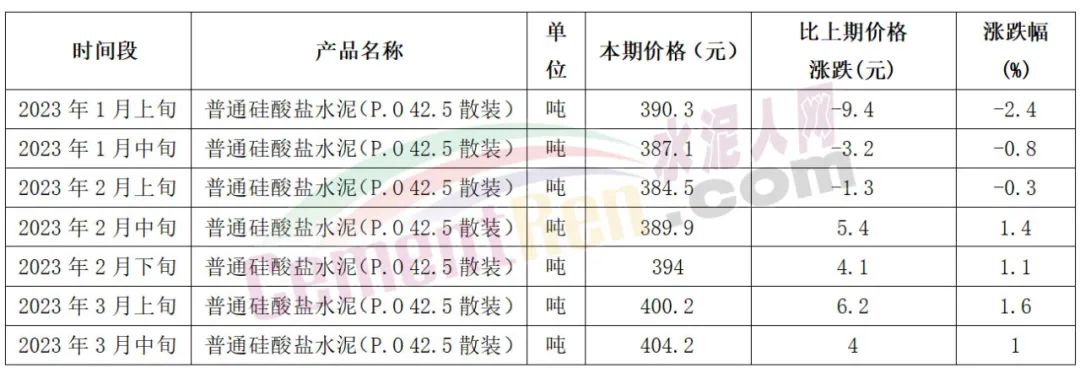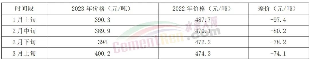 國家統(tǒng)計局?jǐn)?shù)據(jù)3月24日公布的流通領(lǐng)域P.O42.5散裝水泥報價也顯示,從2月中旬以來已流通領(lǐng)域報價由跌轉(zhuǎn)漲。但是與上年同期差價從3月上旬的74.1擴大至76.7元/噸。