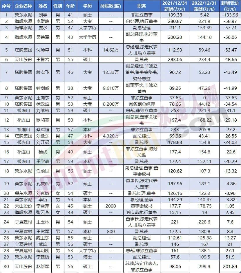 21位水泥企業高管降薪,海螺總經理李群峰降薪58.97萬元