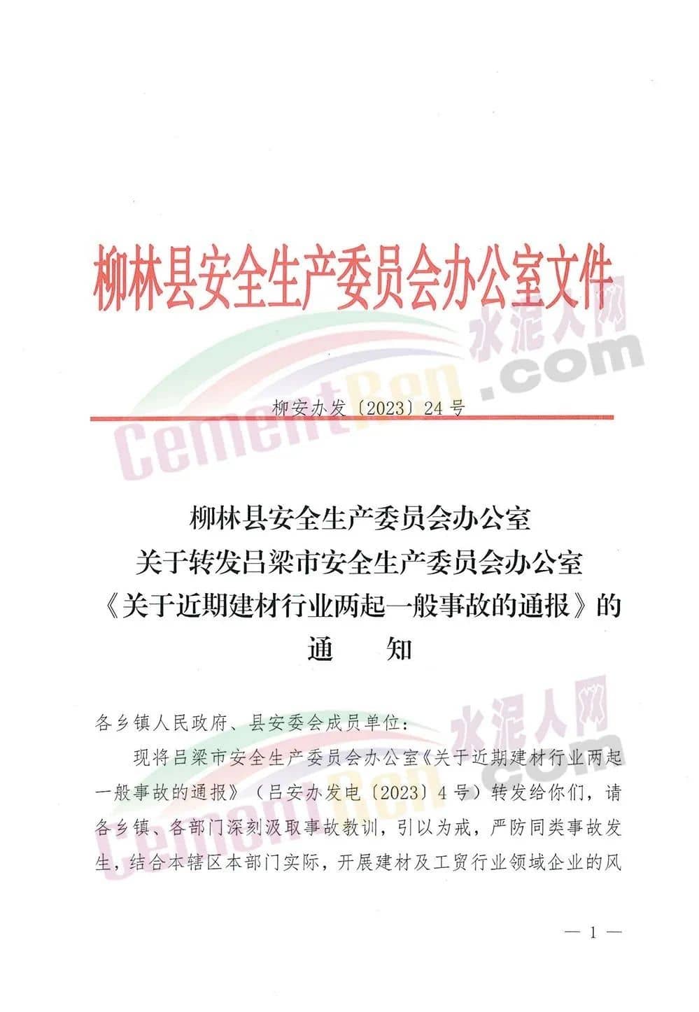 針對上述事故,山西呂梁市柳林縣安全生產(chǎn)委員會辦公室發(fā)布通知給各鄉(xiāng)鎮(zhèn)人民政府、縣安委會成員單位要求各鄉(xiāng)鎮(zhèn)、各部門深刻汲取事故教訓,引以為戒,嚴防同類事故發(fā)生,結(jié)合本轄區(qū)本部門實際,開展建材及工貿(mào)行業(yè)領域企業(yè)的風險隱患排查治理工作,從嚴從細進行“九個自查”,嚴肅查處企業(yè)違法違規(guī)行為,確保安全生產(chǎn)形勢穩(wěn)定。通報原文如下: