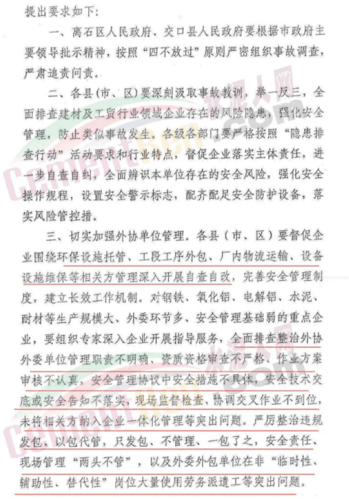 嚴厲整治違規(guī)發(fā)包、以包代管,只發(fā)包、不管理、一包了之,安全責任、現(xiàn)場管理“兩頭不管”,以及外委外包單位在非“臨時性、輔助性、替代性”崗位大量使用勞務派遣工等突出問題