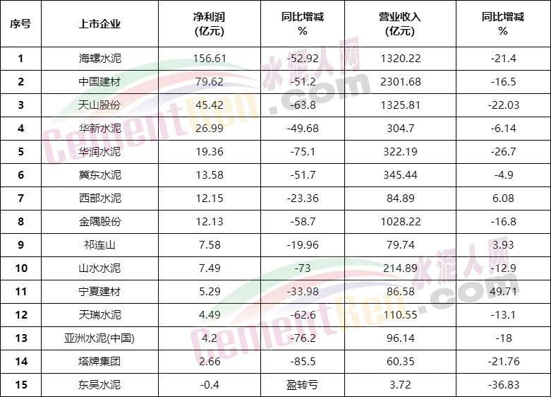 近期,各大上市企業公布的2022年業績并不理想。截至3月27日已公布2022年業績報告的9有企業凈利潤普遍下滑。其中6家凈利潤下降均超過50%,塔牌集團降幅最大為85.5%;東吳水泥出現同比盈轉虧。