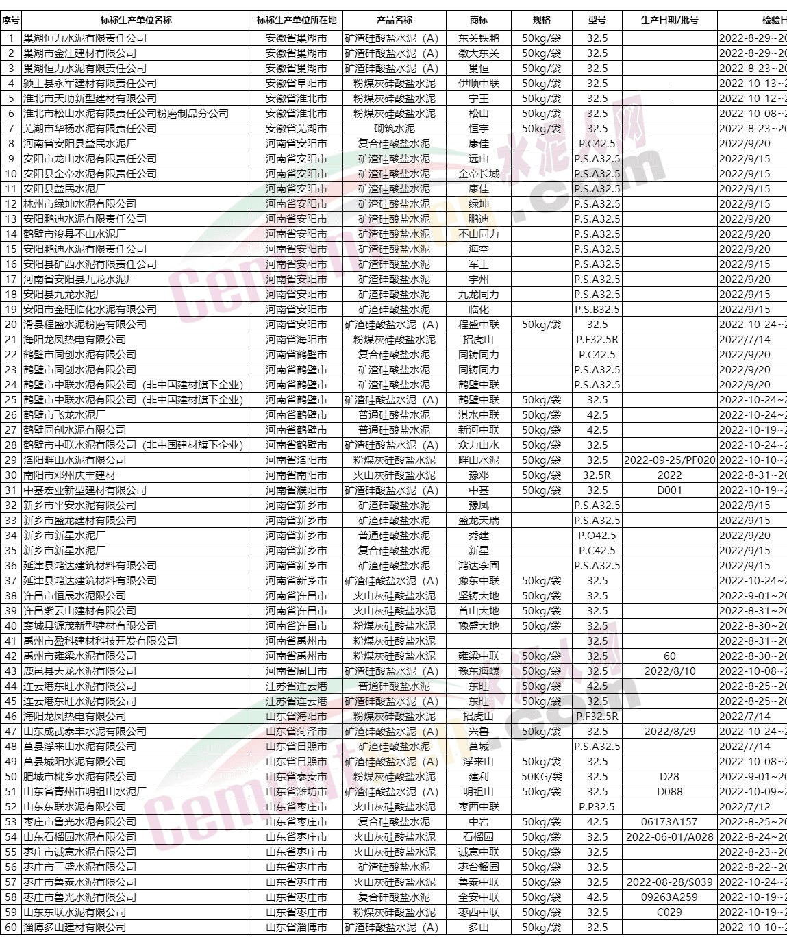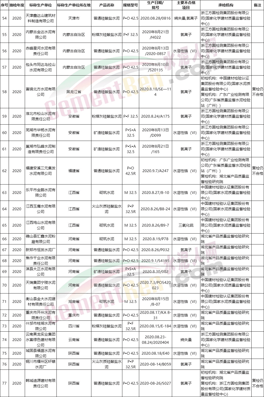 2020~2022年國抽水泥產(chǎn)品不合格名單發(fā)布,共77批次不合格