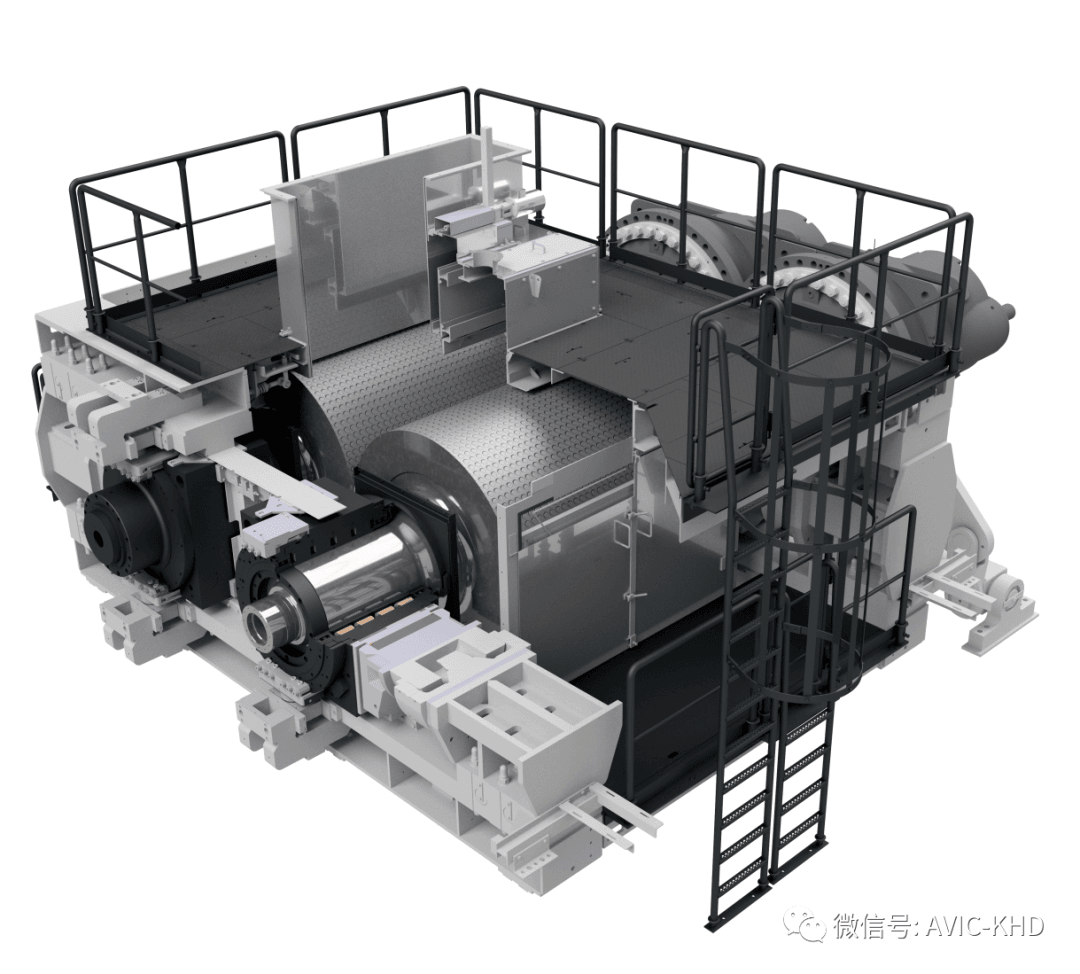 德國洪堡(KHD)公司的輥壓機具有設備運行可靠性高和低維護的優點,可充分利用輥壓機壓力高的優勢,最大限度地降低輥壓機外循環的物料,進而降低物料中間循環輸送的電耗。其采用軌道式設計,便于磨輥拆裝維護,配套電機頂部設計行車軌道,便于檢修電機拆裝維護。使用行車,小車及軌道運輸磨輥,不需要使用吊車。穩壓倉擋板可以橫向和縱向調節,可以確保密封和放置漏料,擋板內部使用耐磨材料。