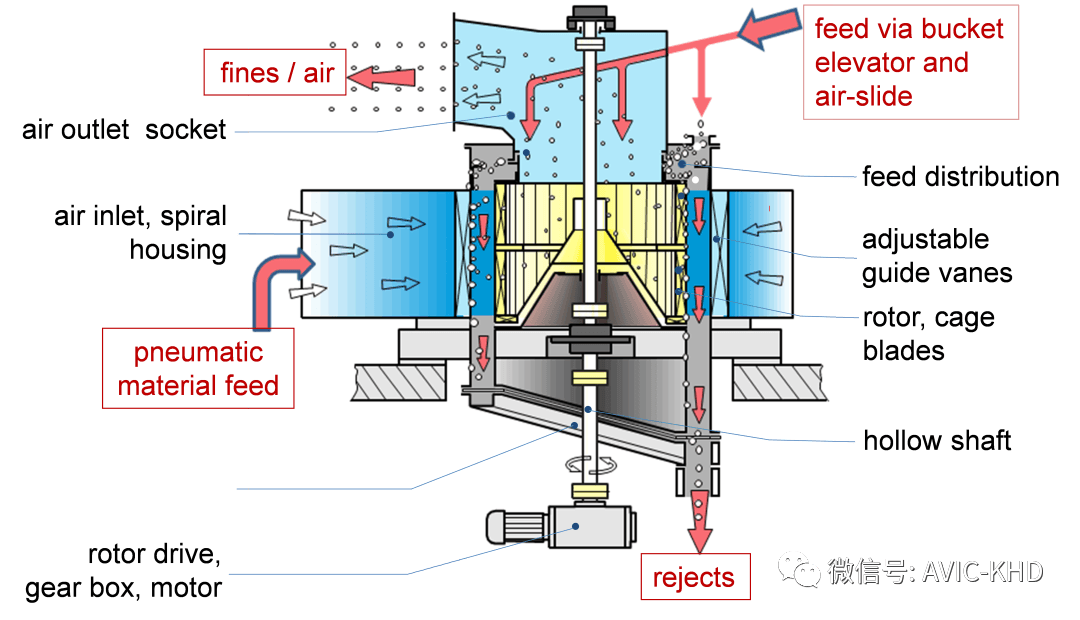 輥壓機系統中的選粉機采用德國洪堡(KHD)公司最新型號的靜態V型選粉機和高效動態選粉機,具有選粉效率高、水泥顆粒級配更加合理的優勢。