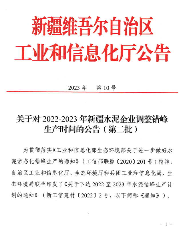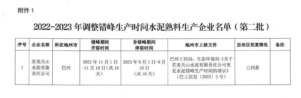 寧夏回族自治區(qū)要求全區(qū)所有水泥熟料生產(chǎn)企業(yè)2022年11月1日~2023年3月10日期間錯峰生產(chǎn)130天,時(shí)限內(nèi)未完成錯峰生產(chǎn)的天數(shù)需在2023年6月底前補(bǔ)足。