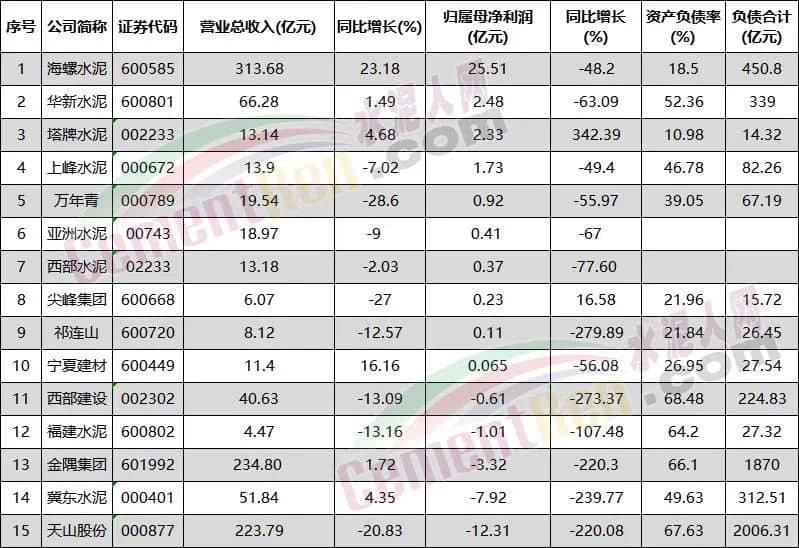 近日,十多家水泥上市企業發布了一季度業績報告,絕大多數企業在量價齊跌的情況下,出現業績下滑或虧損的情況。