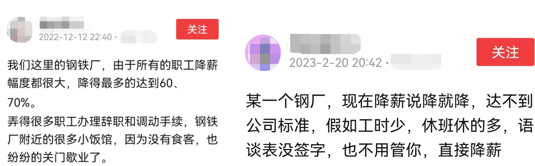 “某一鋼廠,現在降薪說降就降,達不到公司標準,假如工時少,休班休的多……直接降薪”。