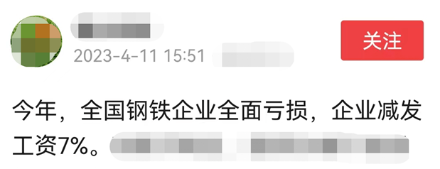 今年,全國鋼鐵企業全面虧損,企業減發工資7%。