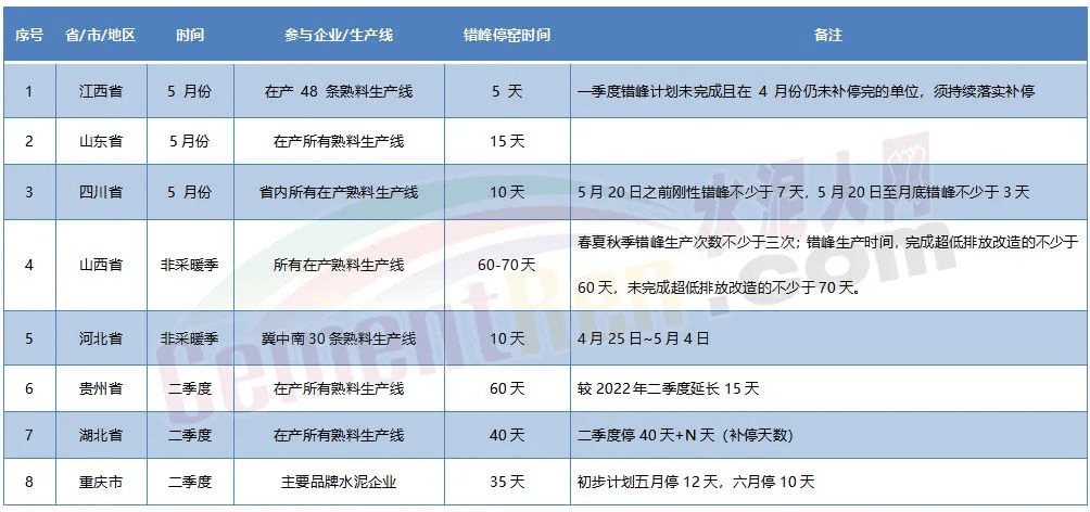 近來(lái),包括河北、山東 、山西、遼寧、貴州、四川在內(nèi)的十幾個(gè)省份水泥企業(yè)開(kāi)啟了二季度錯(cuò)峰生產(chǎn)。同期因市場(chǎng)需求下滑,企業(yè)庫(kù)存持續(xù)創(chuàng)新高,為化解產(chǎn)銷(xiāo)矛盾,其他區(qū)域企業(yè)也陸續(xù)開(kāi)始自主停窯。