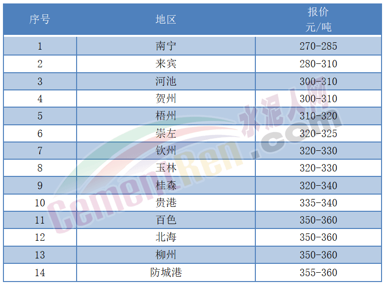 據(jù)市場反饋,6月中旬前后,扶綏海螺包裝水泥下調(diào)30元/噸,主要輻射崇左、南寧、防城港、北海等區(qū)域;北流海螺、興業(yè)海螺等通知袋裝水泥下調(diào)40元/噸,散裝水泥下調(diào)30元/噸,主要輻射玉林、桂林等區(qū)域。目前南寧市場P.O42.5散裝水泥報價在270-285元/噸左右。
