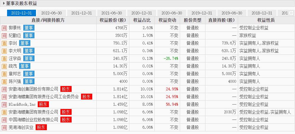 海螺水泥持有海螺創業6.06%的股份,海螺創業持有海螺水泥0.31%的股份,均位于各自企業10大股東之內。