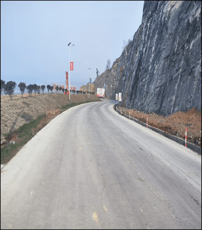 天津礦山應用公司專利《一種礦山爆破結構以及其爆破方法》,專利號:ZL 2020 1 1265116.X,《一種用于礦山穿孔爆破的防塵裝置》,專利號:ZL 2022 2 0511680.3,完成道路路基、路面施工。