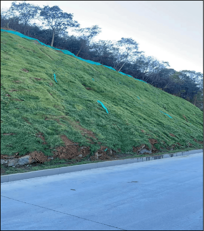 ②山體高陡堅硬,路基最大開挖高度54m,設計路面標高落差155.03m;