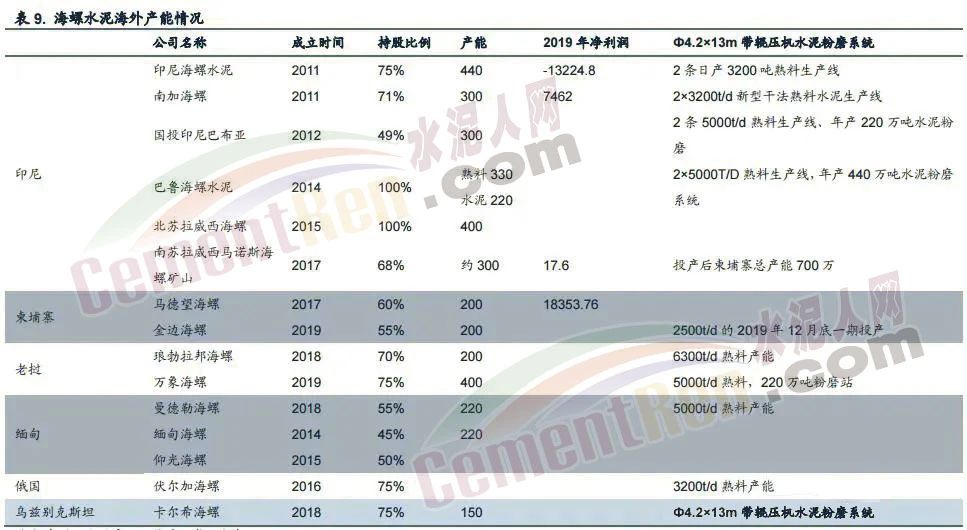 老撾的瑯勃拉邦和萬象海螺從17年投產以來每年都是虧損的,19年兩家公司合計虧損7000多萬;緬甸有3個公司——曼德勒、仰光和緬甸海螺,其中披露過的曼德勒17年賺了888元(不是萬元),18年賠了3371元,19年虧損5000萬;俄羅斯的伏爾加海螺17年開始投產,當年賠了4000萬,18年賠了400萬;19年賺了12萬。