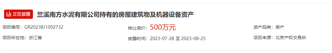 近期華南區域主要品牌企業發布公告,公開轉讓旗下一家水泥企業全部資產。資產包括土地、廠房和料庫等建筑構筑物,生產設備、設施和其相關備品配件,以及鐵路專用線(兩線軌道和相關基礎設施)等主要輔助性物資。