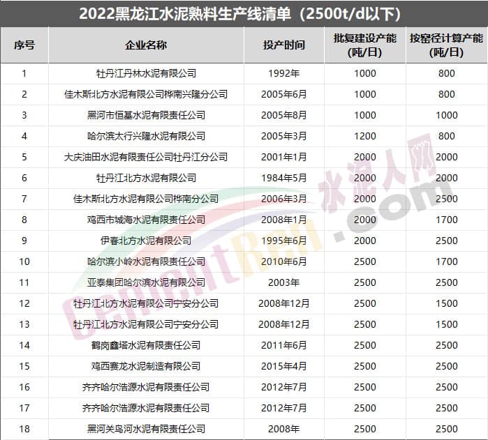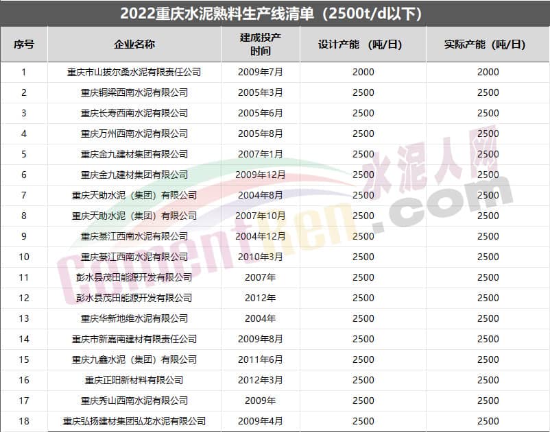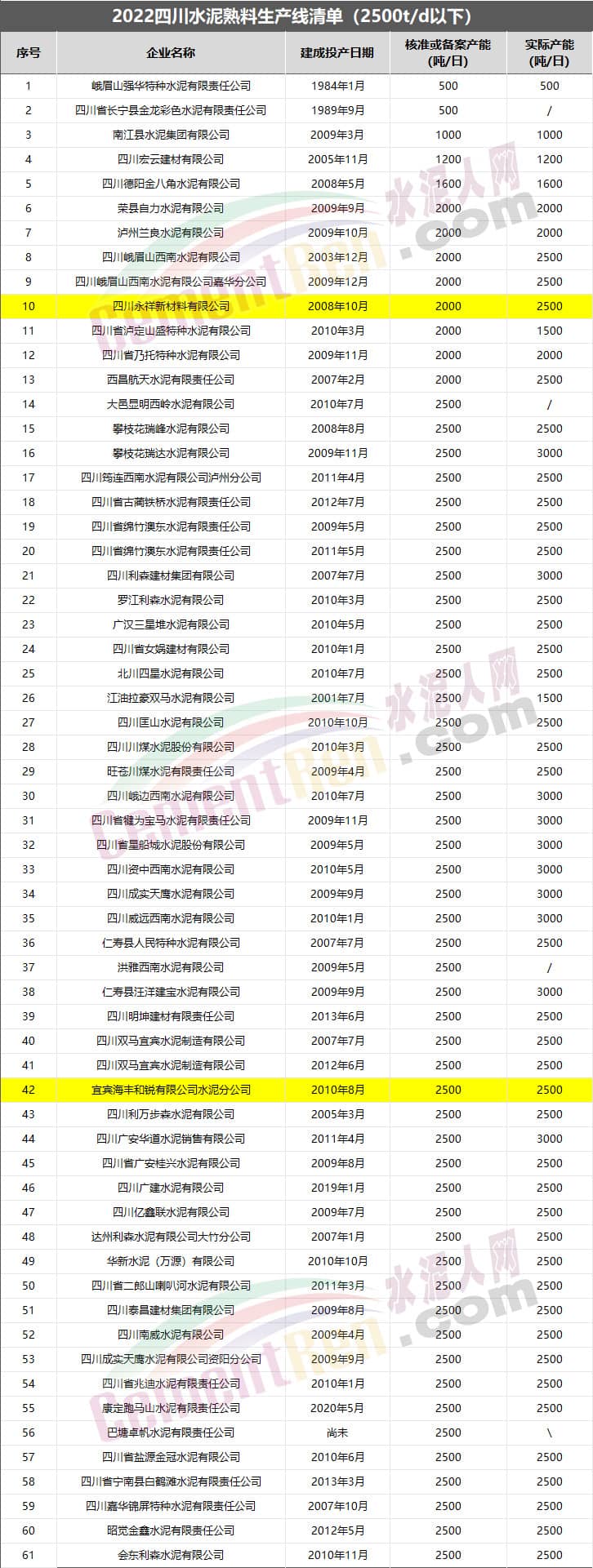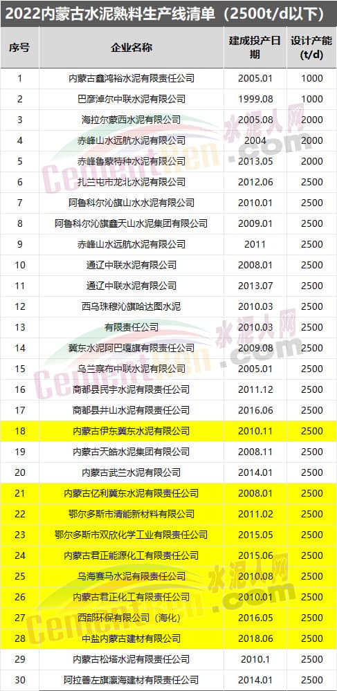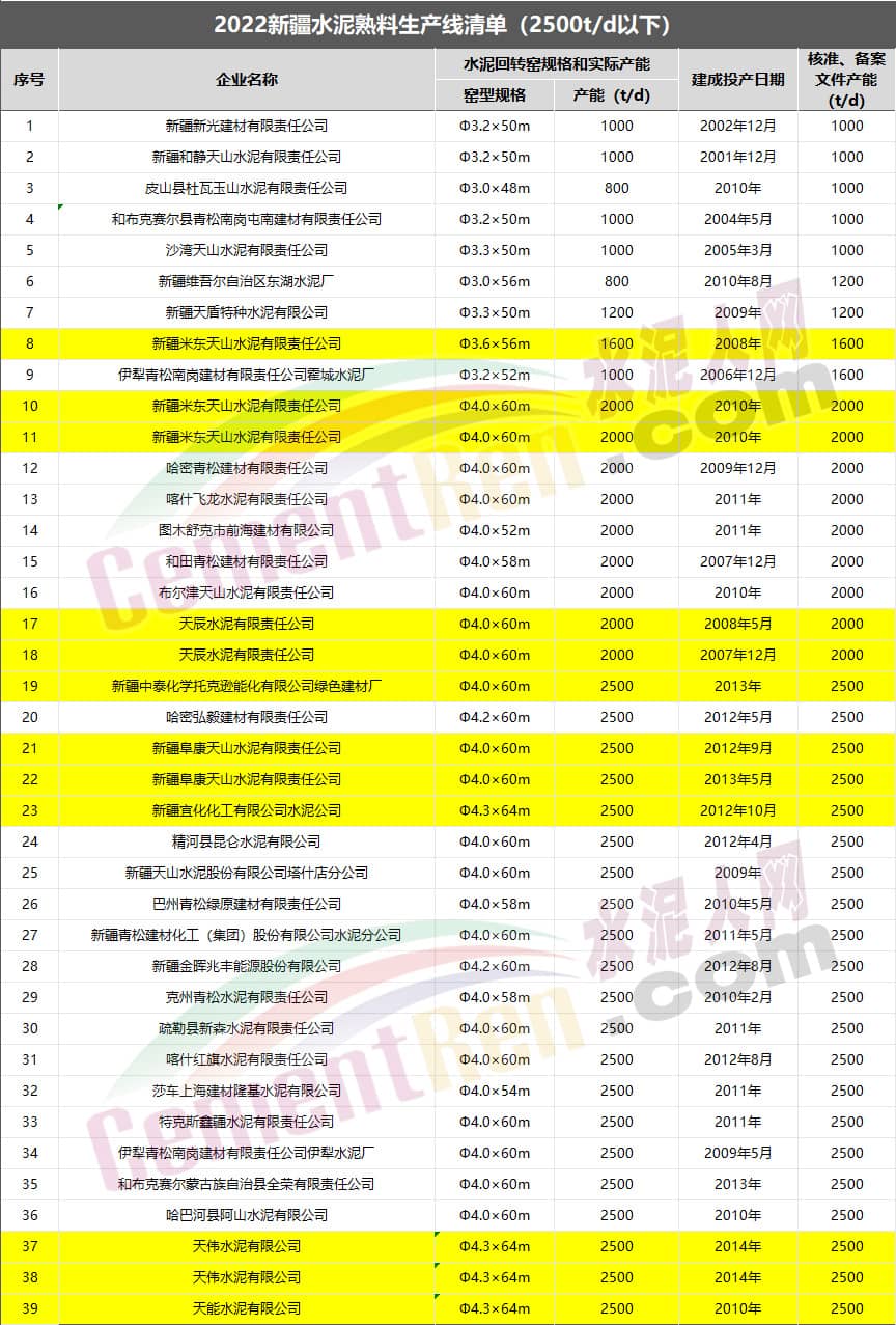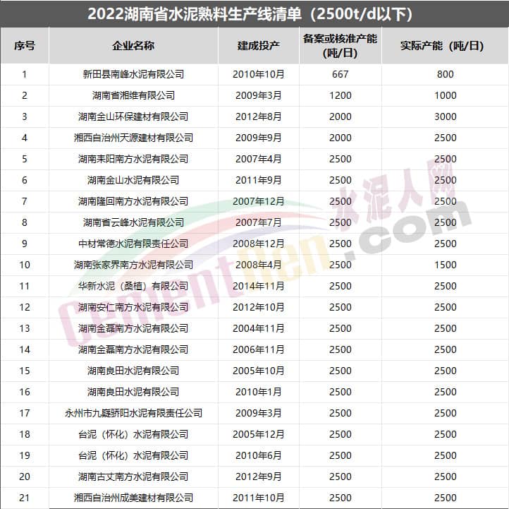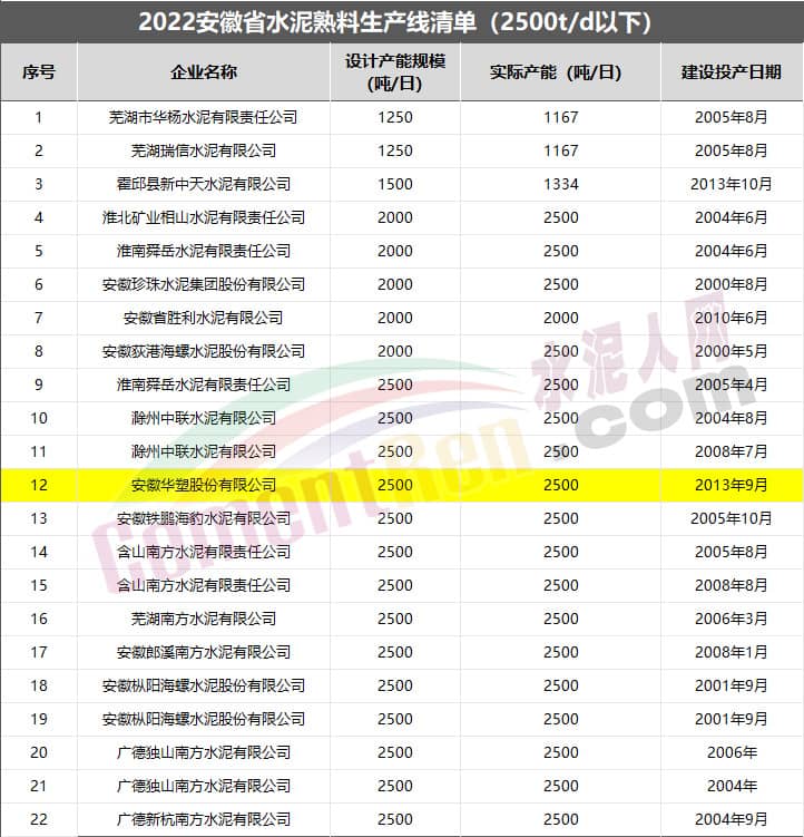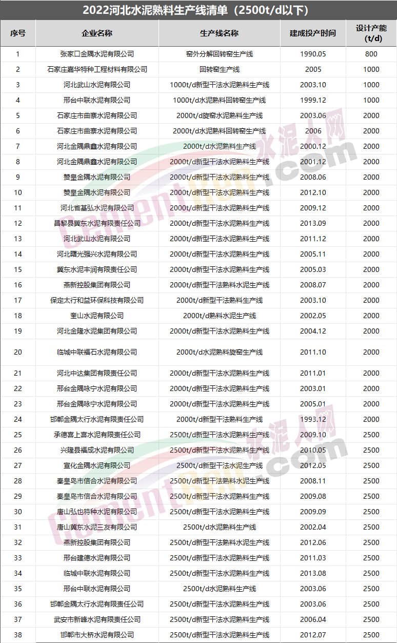 山東省:2022年年底前,除特種水泥熟料和化工配套水泥熟料生產線外,2500噸/日以下的水泥熟料生產線已全部淘汰,2023年6月底前全部拆除的生產裝置。2500噸/日的水泥熟料生產線整合退出一半,其余2500噸/日水泥熟料生產線須確定產能置換方案。逾期未完成產能置換的水泥熟料生產線直接關停退出。