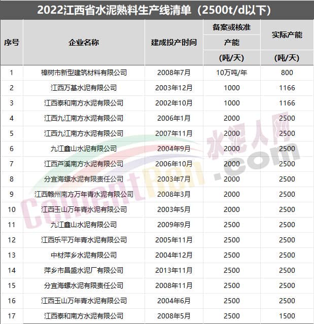 江西省:《江西省“十四五”應對氣候變化規劃》提出,加快淘汰2000噸/日及以下普通水泥熟料生產線,產能利用率較低的地區加快淘汰2500噸/日及以下普通水泥熟料生產線。