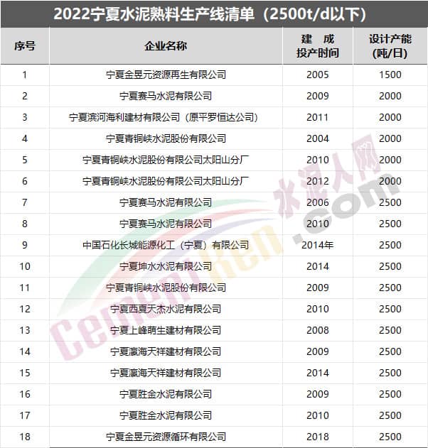 寧夏回族自治區:《寧夏回族自治區能耗雙控產業結構調整指導目錄(試行)》要求,2023年淘汰2500噸/日以下水泥熟料生產線、JT窯、直徑3.2米以下水泥磨機(含礦粉磨機),化工配套水泥熟料生產線于2024年前淘汰;2025年前淘汰2500噸/日的水泥熟料生產線(化工配套水泥熟料生產線除外)。