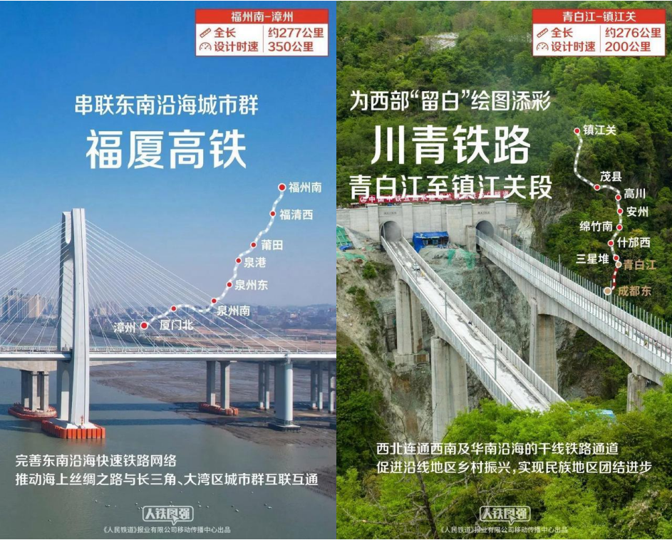 成宜高鐵、滇藏鐵路麗江至香格里拉段、敘永至畢節鐵路、龍龍鐵路龍巖至武平段等多個項目建設也已接近尾聲。