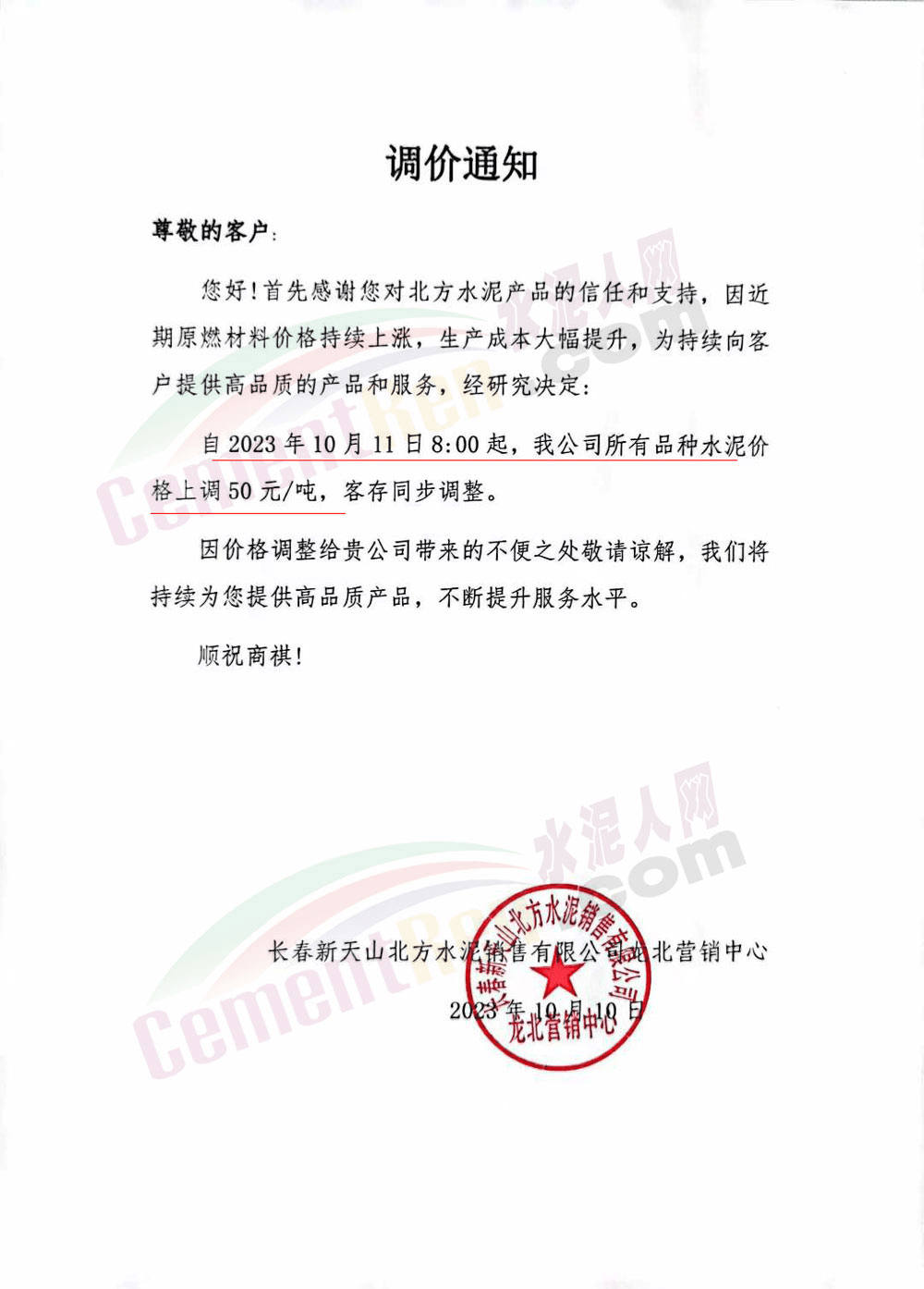 水泥人網通訊員消息:日前遼、吉、黑區(qū)域主要品牌企業(yè)再次通知上調水泥、熟料報價。