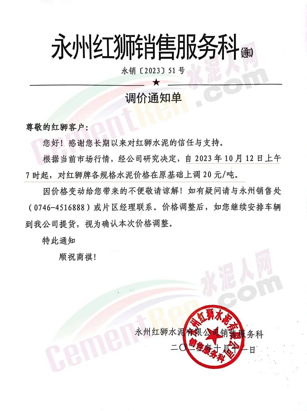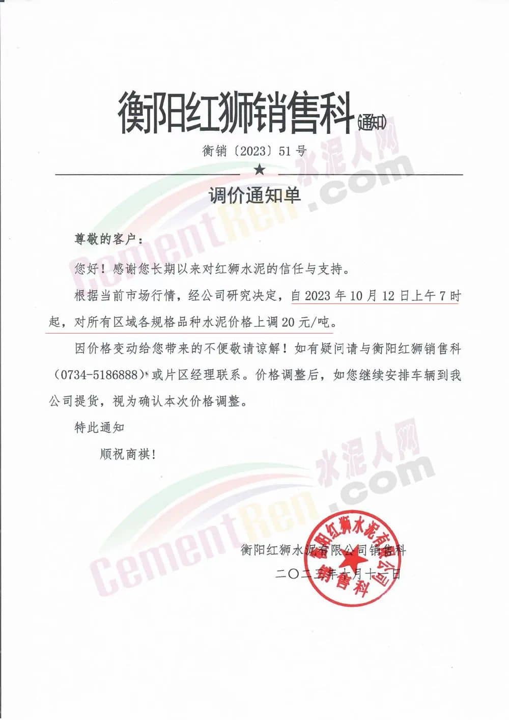 同日湖南區(qū)域主要品牌企業(yè)通知12日起再次上調水泥價格20元/噸。