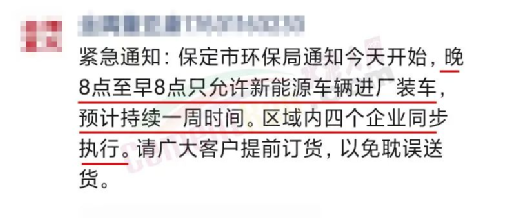 與此同時,河北保定區域某水泥企業通知,禁止非新能源車進廠。