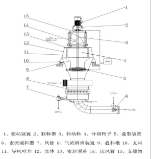 (5)獨特設計的分級流場和立式分級輪,可以將產品粒度進行分級,降低了粉體與分級輪的摩擦,大大地延長了分級輪的使用壽命。