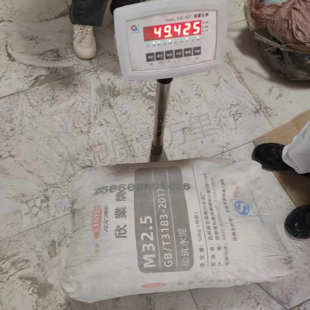 吉林省長春新興水泥廠“欣業”牌M32.5標稱50kg實測47.565kg、47.650kg、48.805kg、49.425kg、49.355kg